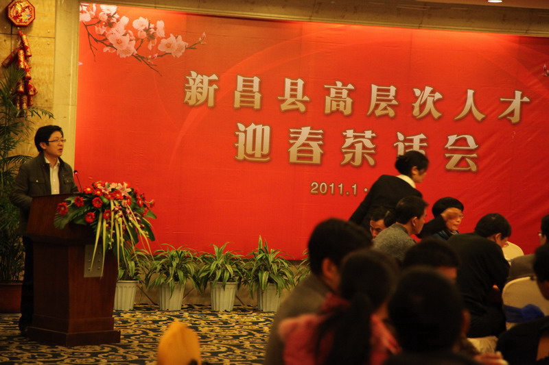 1月13日,,,,,,,,我公司人力资源总监雷新权、研发中心朱建荣博士及制剂外贸部司理张春华加入了在白云山庄举行的新昌县高条理人才迎春茶话会。。。。。。县委常委、组织部长金水法出席聚会,,,,,,,,全县高条理人才代表、企业人才事情代表与相关部分向导加入茶话会。。。。。。