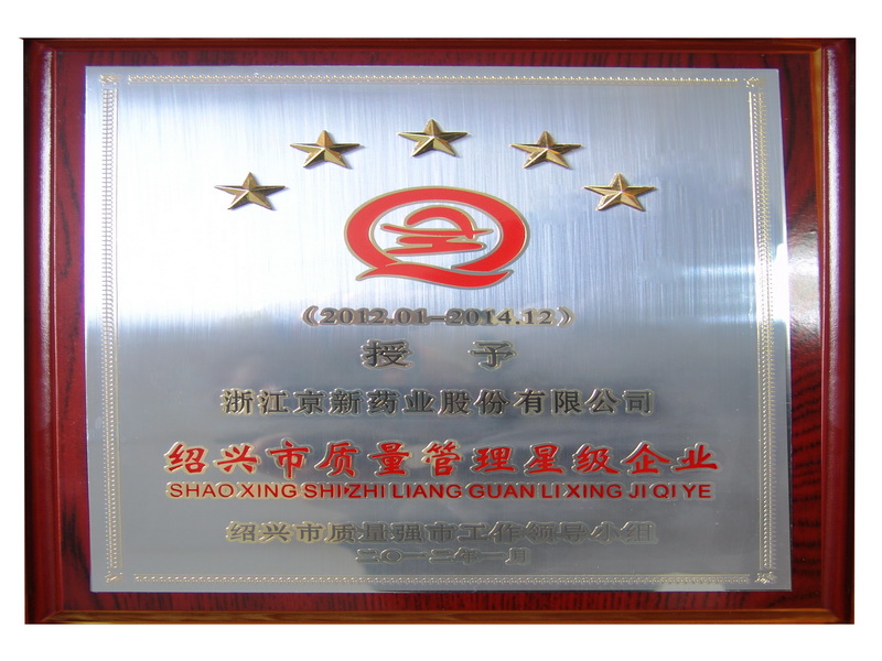 我公司荣获绍兴市首批质量管理五星级企业称呼