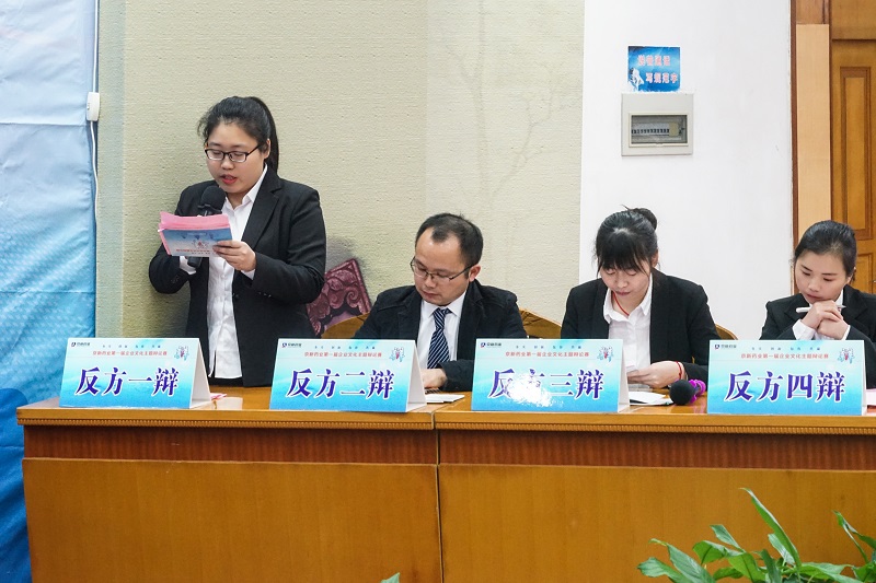 12月15日,,,,,,,,新宝gg创造奇迹药业第一届企业文化主题辩说赛半决赛准期举行,,,,,,,,经由预赛、加赛的强烈角逐,,,,,,,,四强步队脱颖而出,,,,,,,,为我们泛起了一次更为精彩的头脑碰撞。。。。。。角逐特邀新昌中学原语文教学组组长、资深语文教育专家潘国仁先生、新昌中学原语文教学组组长、资深语文语言专家俞雅丽先生、新昌中学政教处副主任、政治先生王玉瑛、新昌中学语文先生梁珂菡及求旭丽、新昌中学政治先生张凤珍、公司党委副书记孔庆丰等向导出席并担当评委,,,,,,,,近200余员工现场观战。。。。。。
